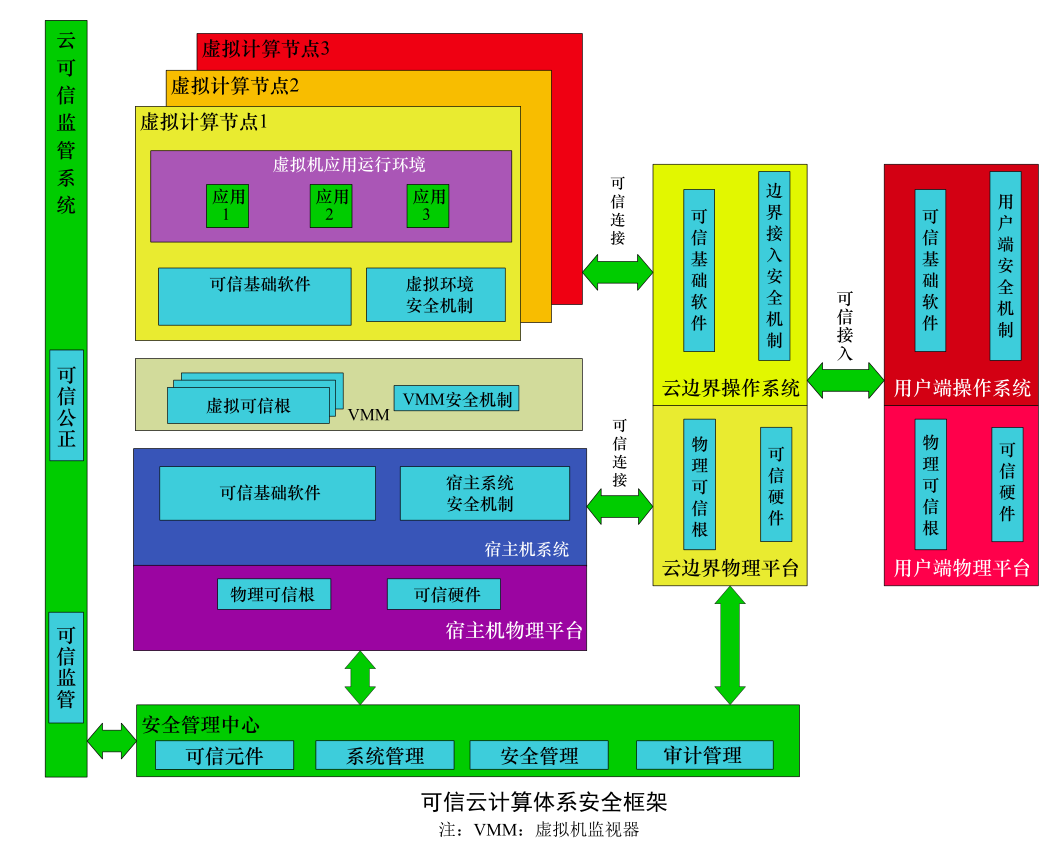 通过建立云架构下的可信链,为虚拟运行环境提供可信保障;