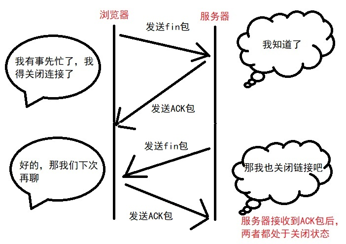 服务器端接收到这个确认包之后,关闭连接,进入CLOSED 状态。
