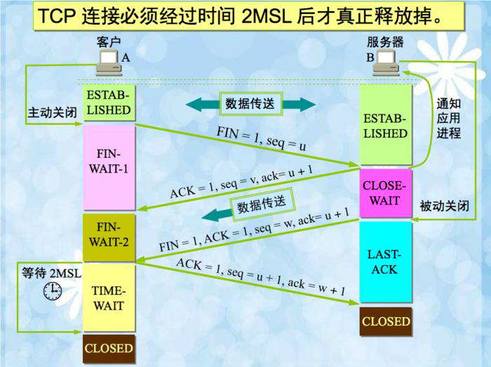 客户端等待了某个固定时间(两个最大段生命周期,2MSL,2 Maximum Segment Lifetime)之后,没有收到服务器端的ACK,认为服务器端已经正常关闭连接,于是自己也关闭连接,进入CLOSED状态。